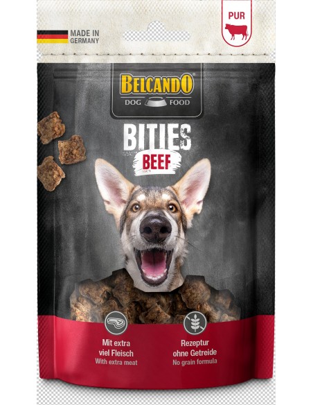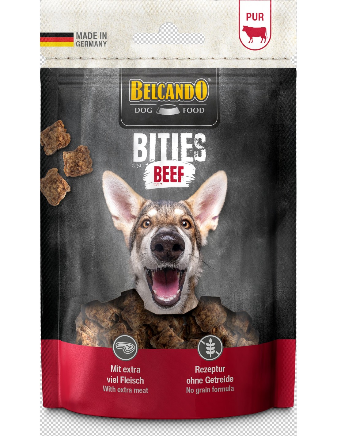 Morsi e via! I Bities al manzo sono così gustosi che vengono divorati in un attimo. L’irresistibile sapore di manzo non significa solo più gusto, ma anche grande gioia in piccoli bocconi. I Bities sono naturalmente "Made in Germany" con extra carne. La ricetta senza cereali né zucchero è delicatamente essiccata all’aria e utilizza solo una fonte di proteine animali per semplicità.